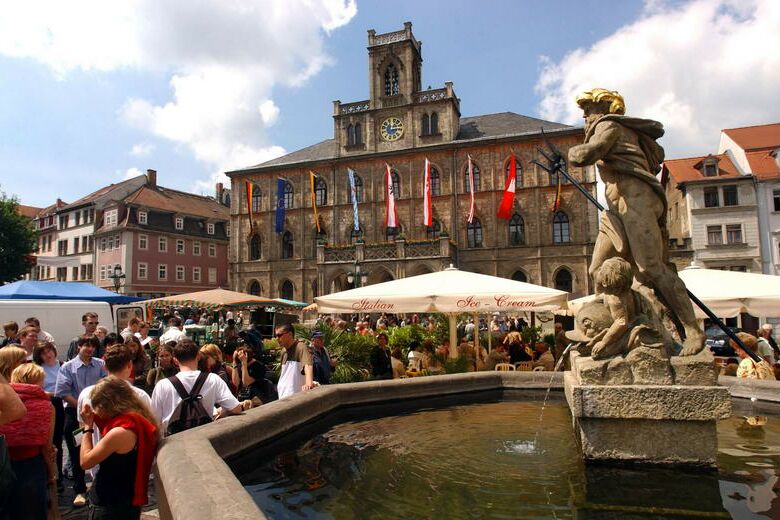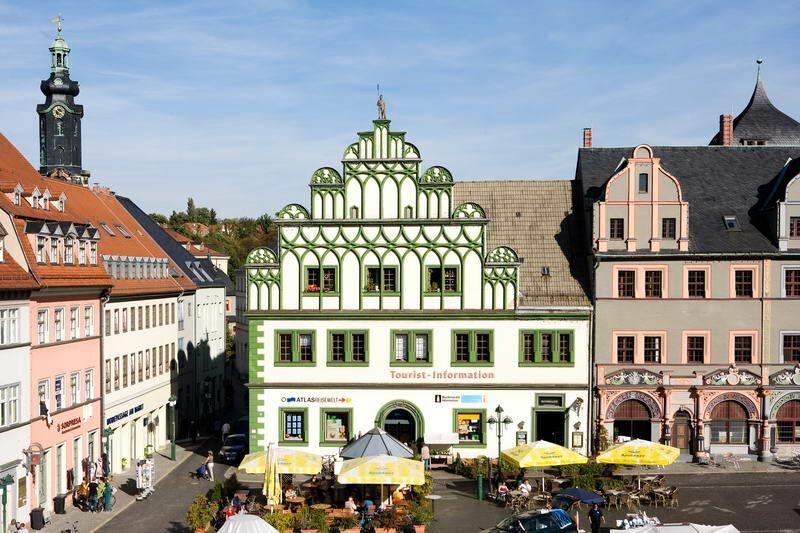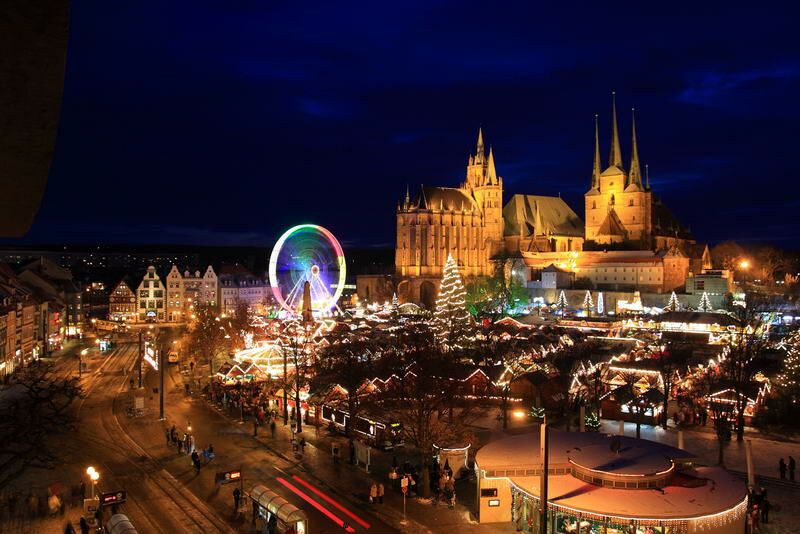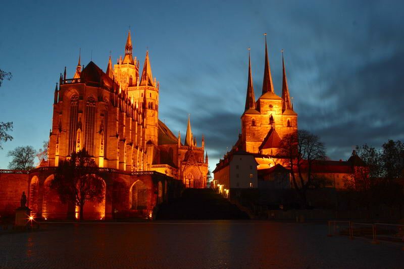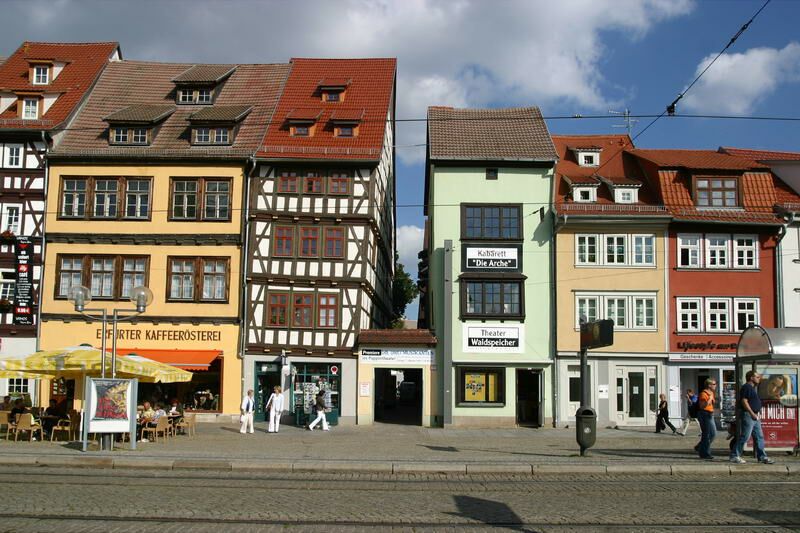 Die über 1250 Jahre alte Blumenstadt (über 200.000 Einwohner) ist das geschichtliche, gesellschaftliche und wirtschaftliche Herzstück Thüringens. Das monumentale Ensemble von Dom und Severikirche, die reichen Patrizierhäuser und reizvollen Fachwerkbauten sowie die vielen Kirchen machen das alte Erfurt zu einem Bilderbuch der deutschen Geschichte.